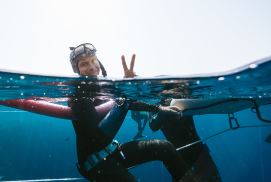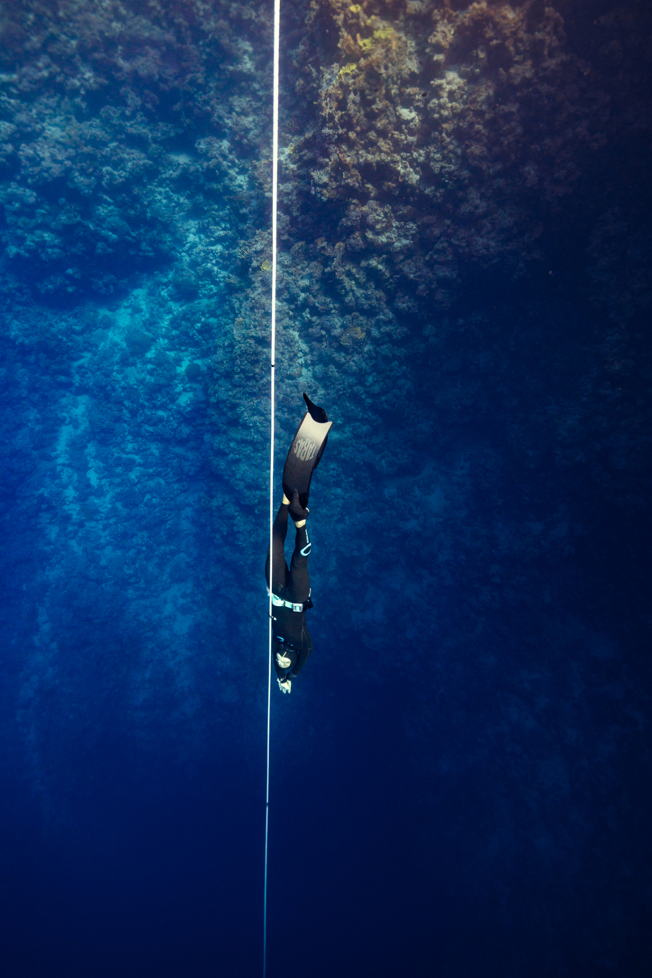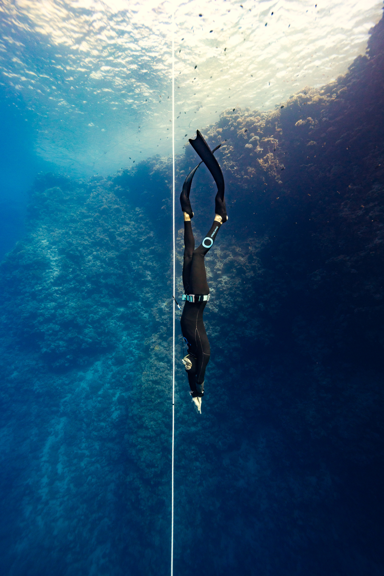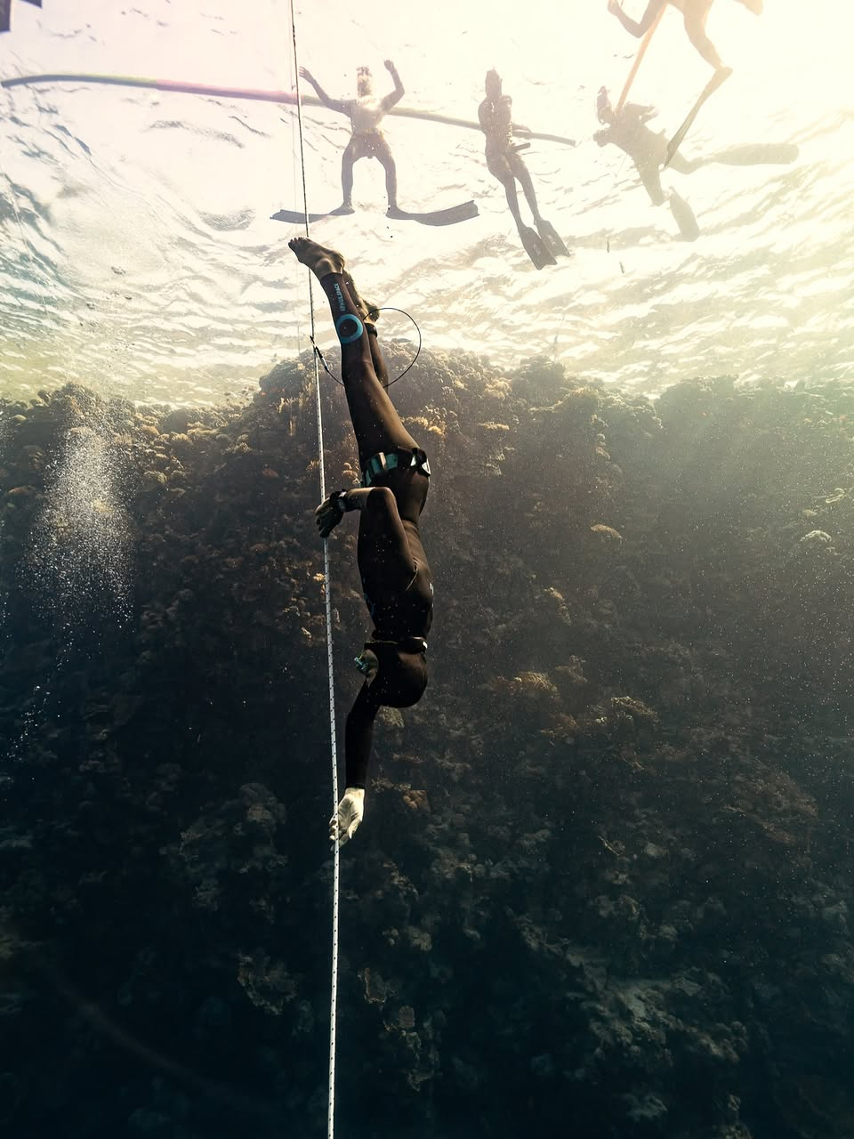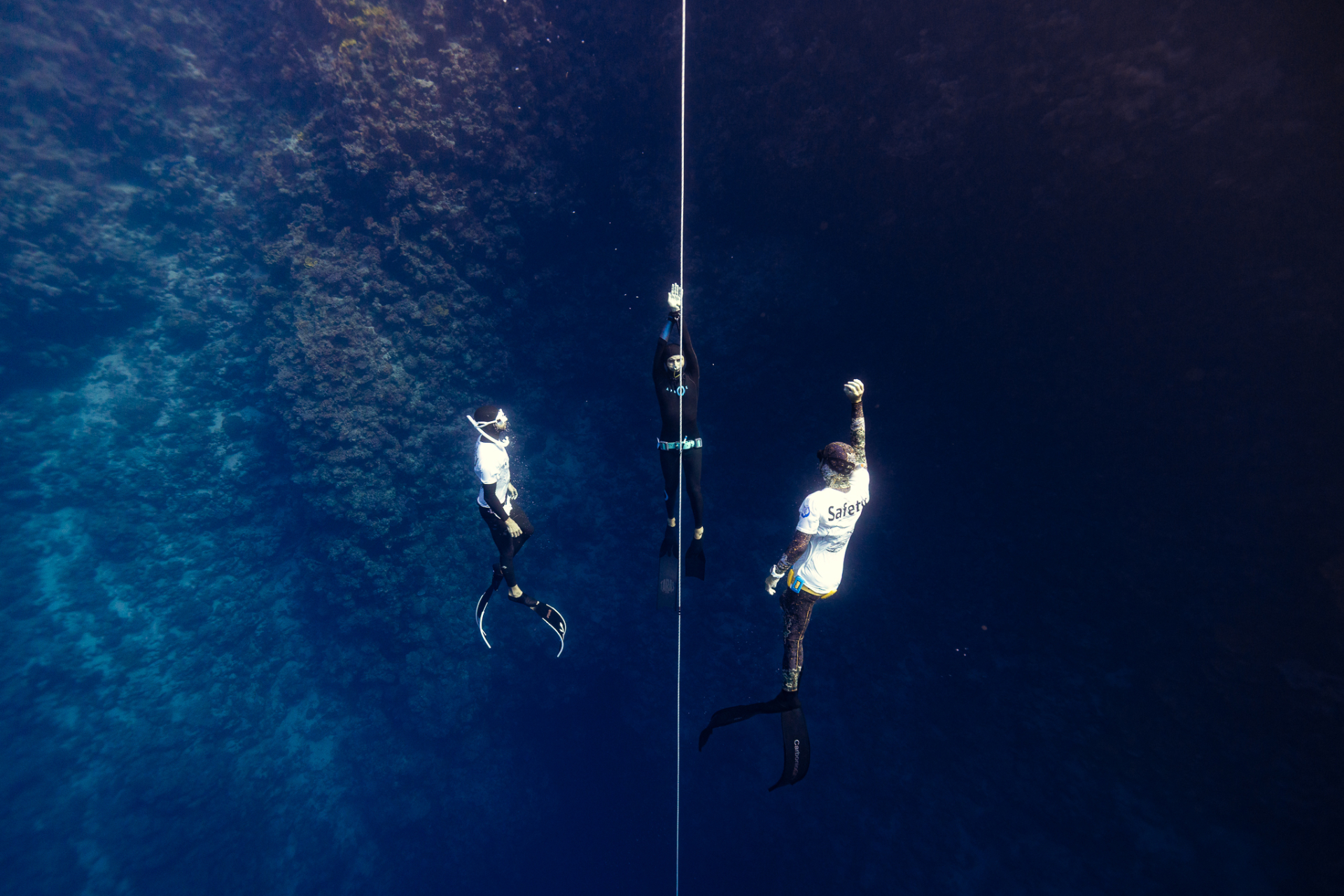 Ve vodě je mi pak ještě hůř. Dnešní nervozita je chvílemi až toxická. Warmup byl ale super, hang v 25 m, čas 4 min+. Sice se pak málem pozvracím, ale vím, že to umím a naštěstí Jack je tady se mnou a já nemůžu utéct. “Line is ready!” Přicvakávám lanyard, beru šnorchl a lehám na hladinu. A všechen ten chaos je najednou pryč. Povedlo se mi to rychle a celý 4 minuty přípravný fáze byly přítomný a dokonalý. Mám zavřený oči, dýchám si ve svých vzorcích a počítám. A najednou se těším. A moc.