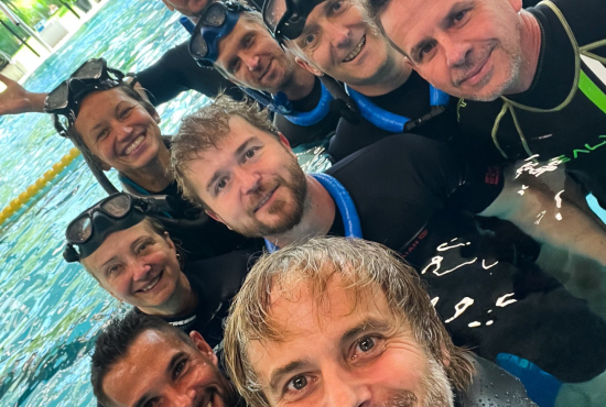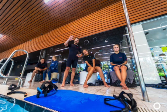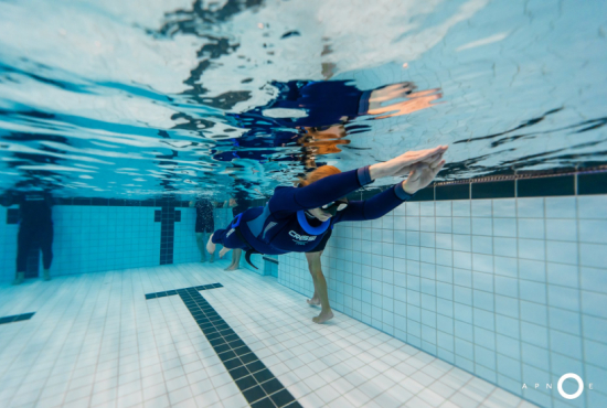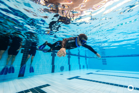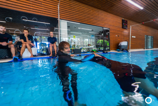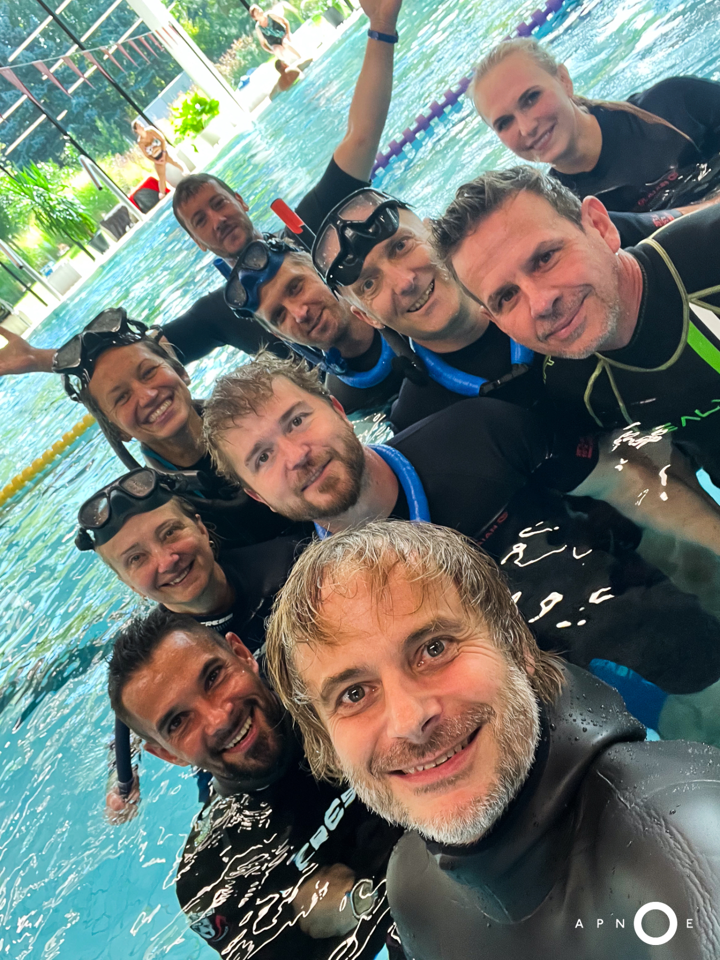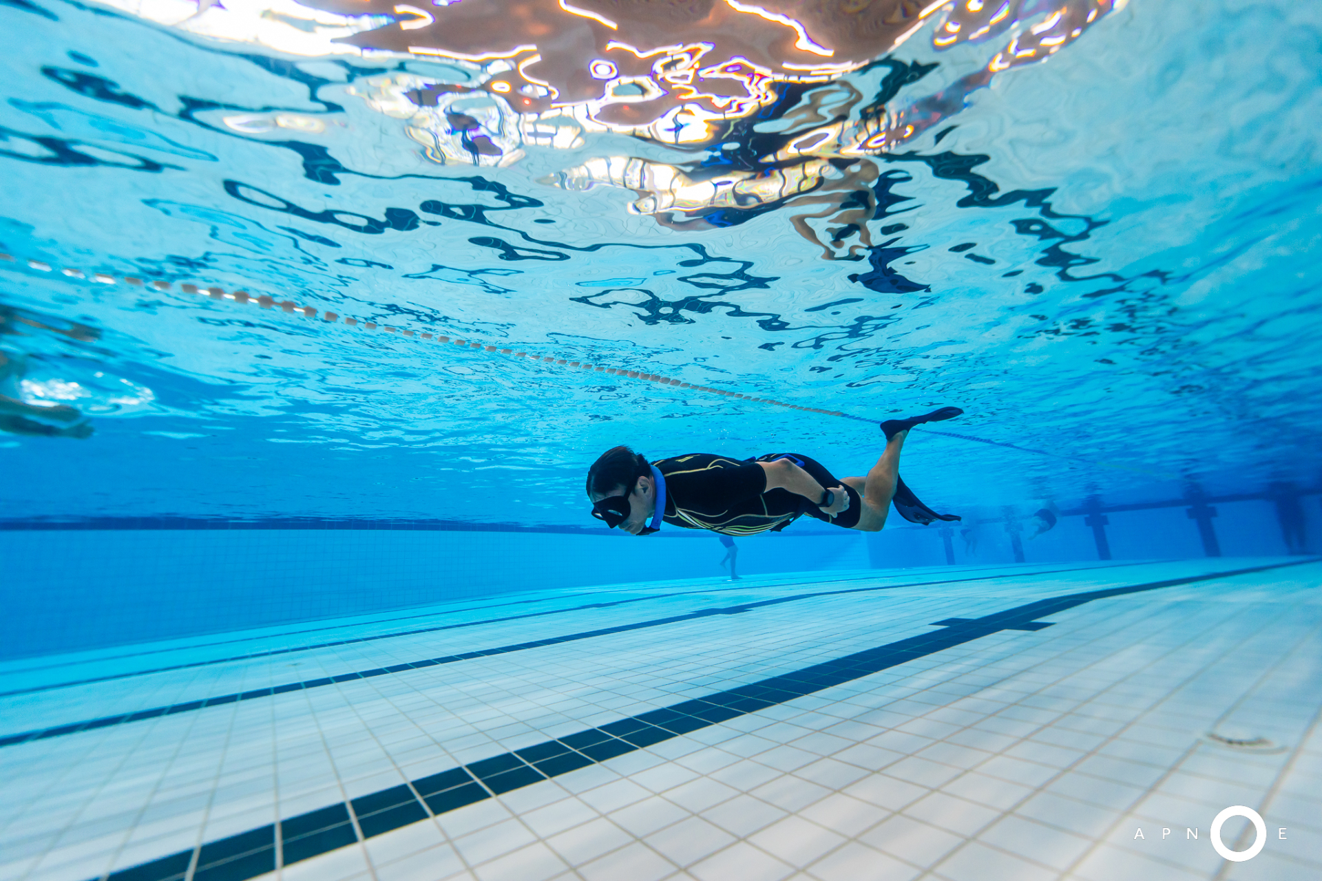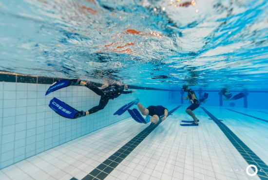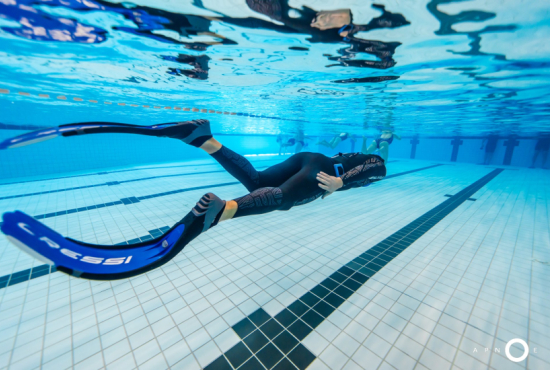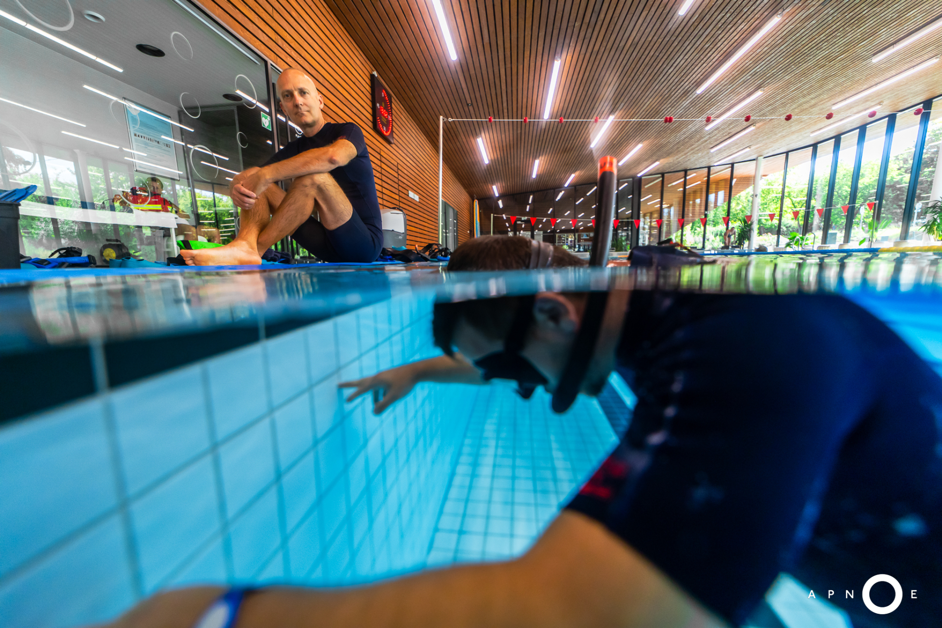 Začít svou freedivingovou cestu v bazénu je ten nejlepší nápad. Na všechno je dostatek času, studenti nejsou ve stresu z hloubky, vyrovnávání tlaku nikoho nelimituje a můžou si tak co nejvíc užít potápění v mělké vodě. Čím lépe se naučíte pohybovat horizontálně, tím jednodušší pro vás bude přechod do fáze vertikální. V mělké vodě také nemusíte řešit, jestli nejste příliš hluboko a jestli vám vyjde vzduch i na cestu nahoru. Takže se můžete uvolnit, soustředit, pracovat na technice a pomalu získávat sebedůvěru. Metry a minuty pak přicházejí samy.