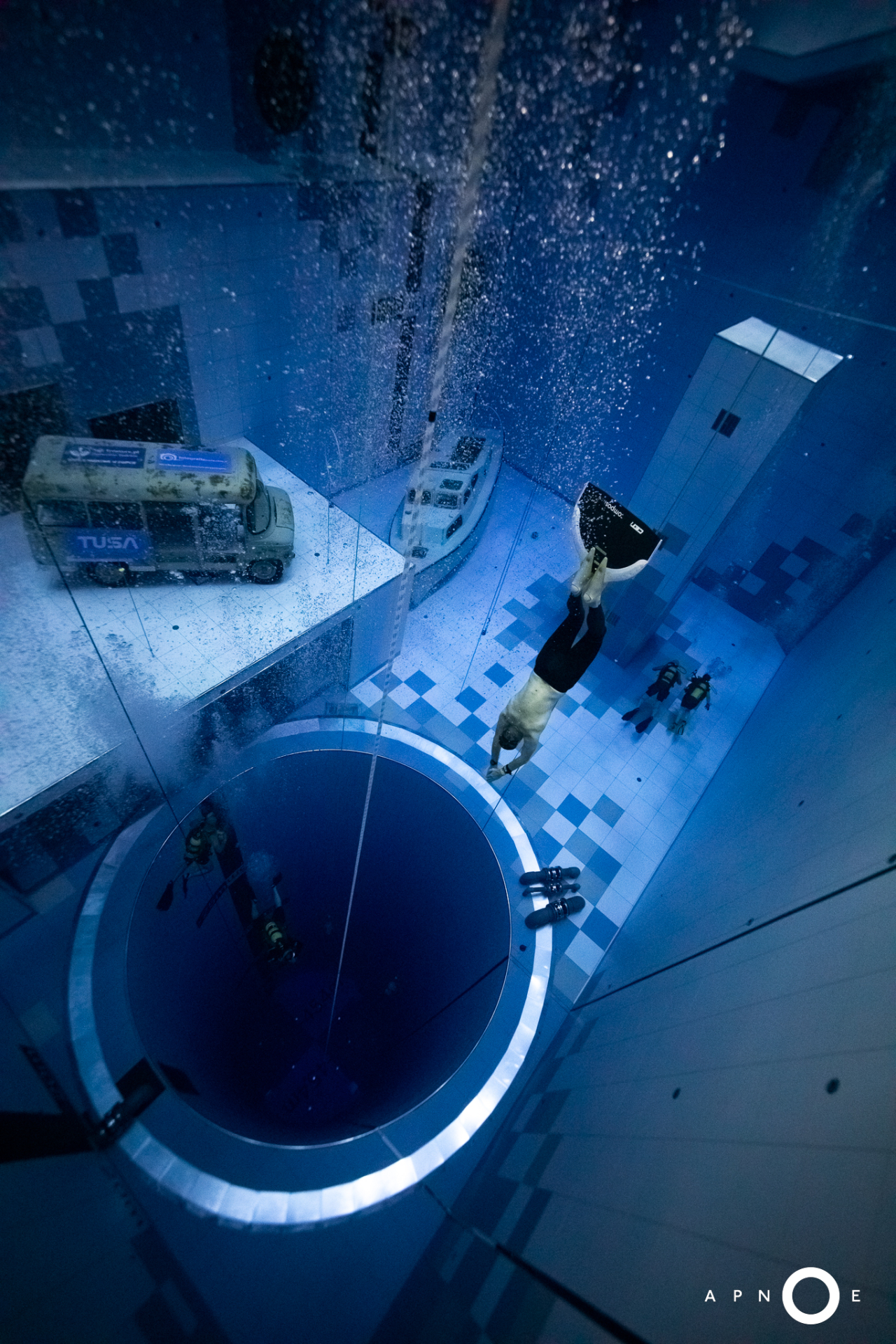 Deepspot jsme měli pokaždé téměř jen pro nás. Každý měl své lano a spoustu času na odpočinek, přípravu i ponory samotné. A zkoušeli jsme všechno možné. Bifiny, monofin, FIMko i no-fins, vyrovnávání mouthfillem, frenzel a reverse pack, ladili freefall a pomalu se tak blížili ke dnu. Kuba zmáknul W2 jako nic a nebýt Petrových problémů s uchem poslední den, dopadlo by všechno na sto procent.