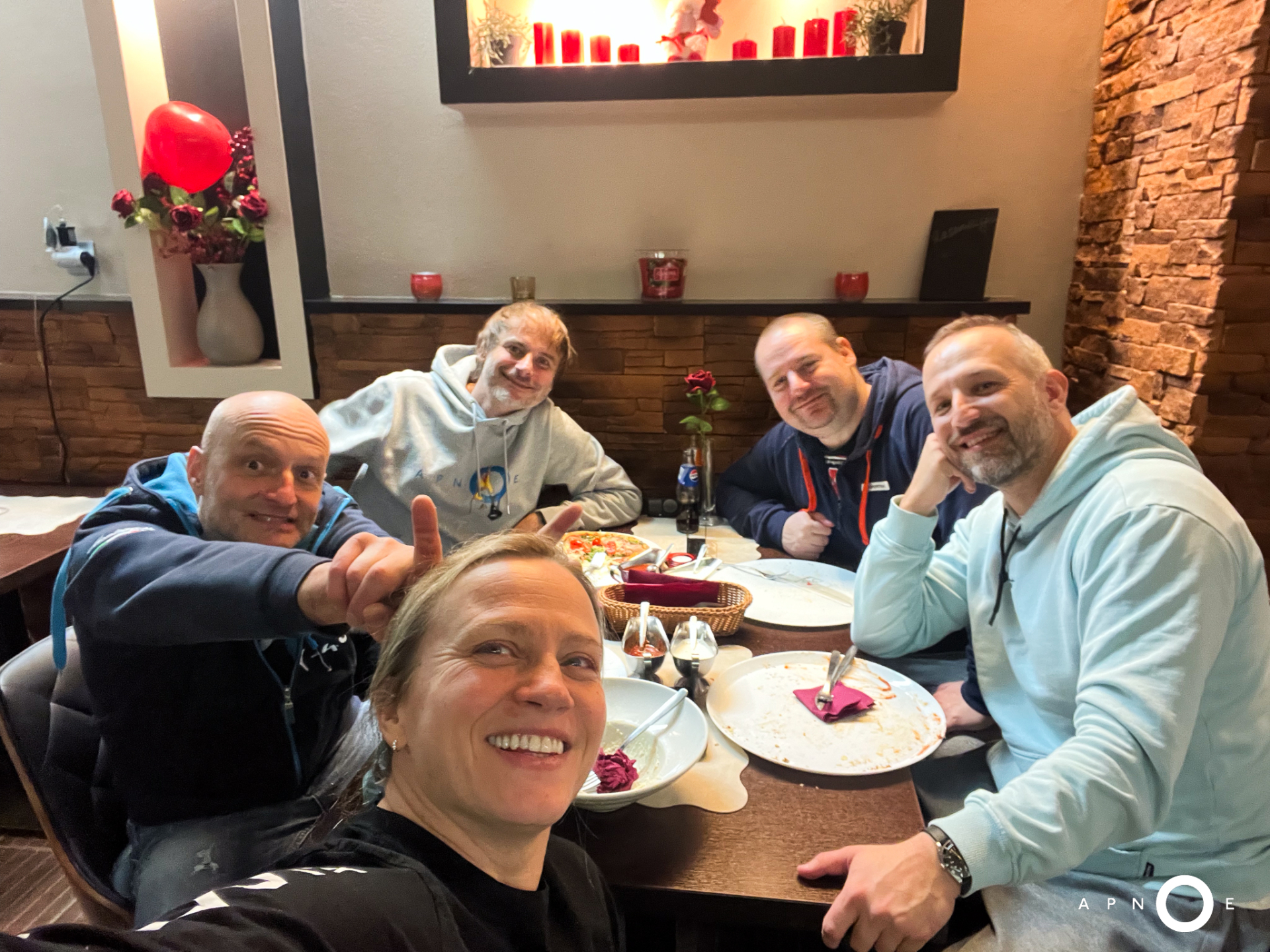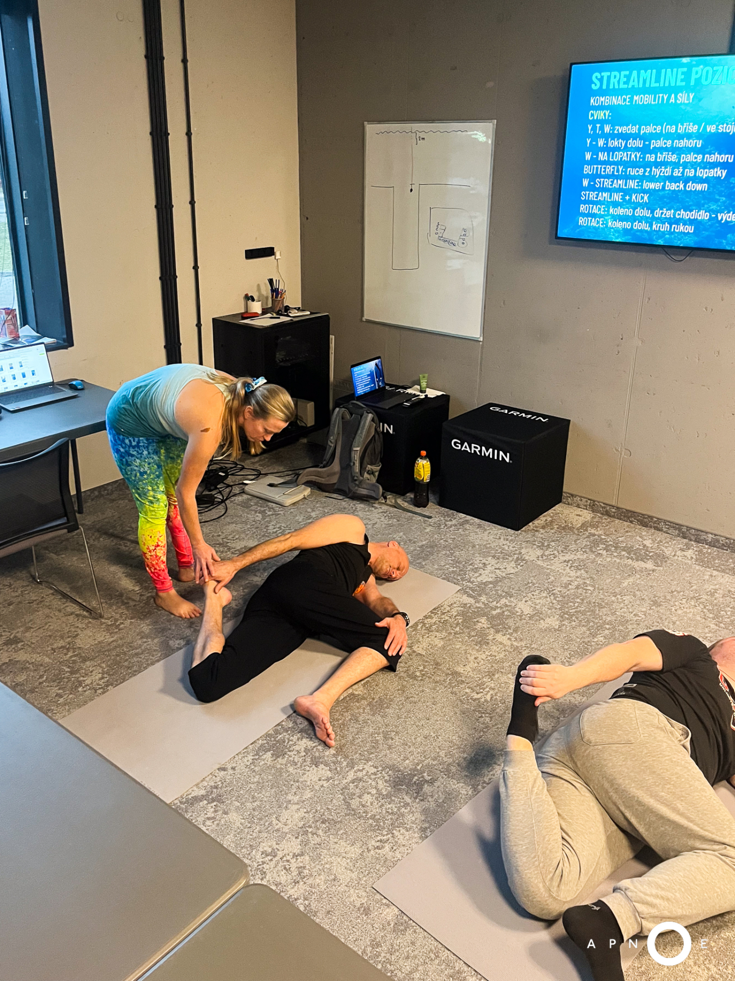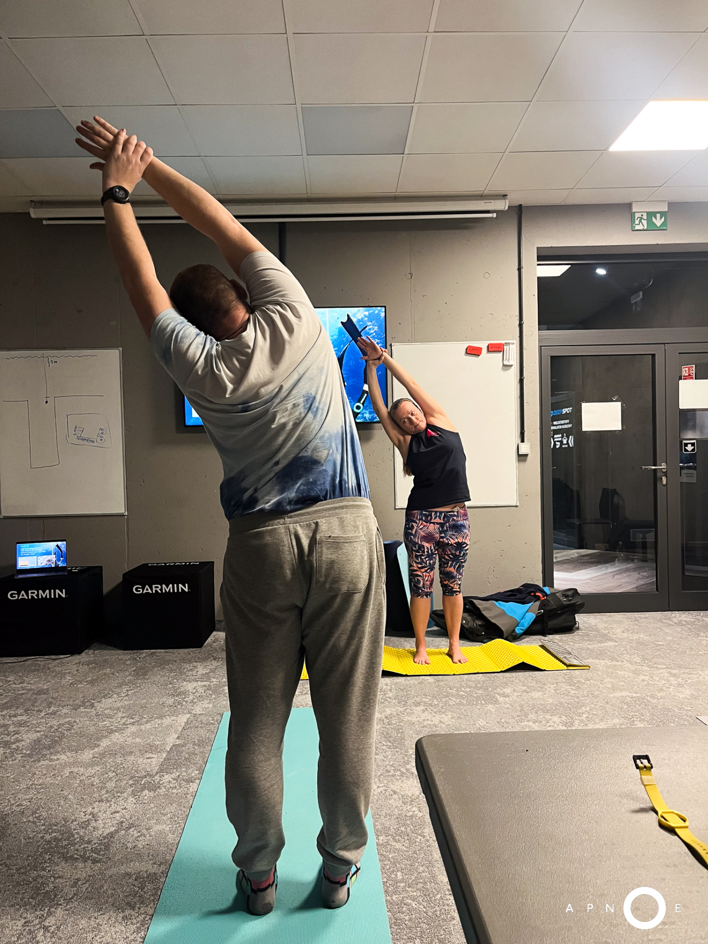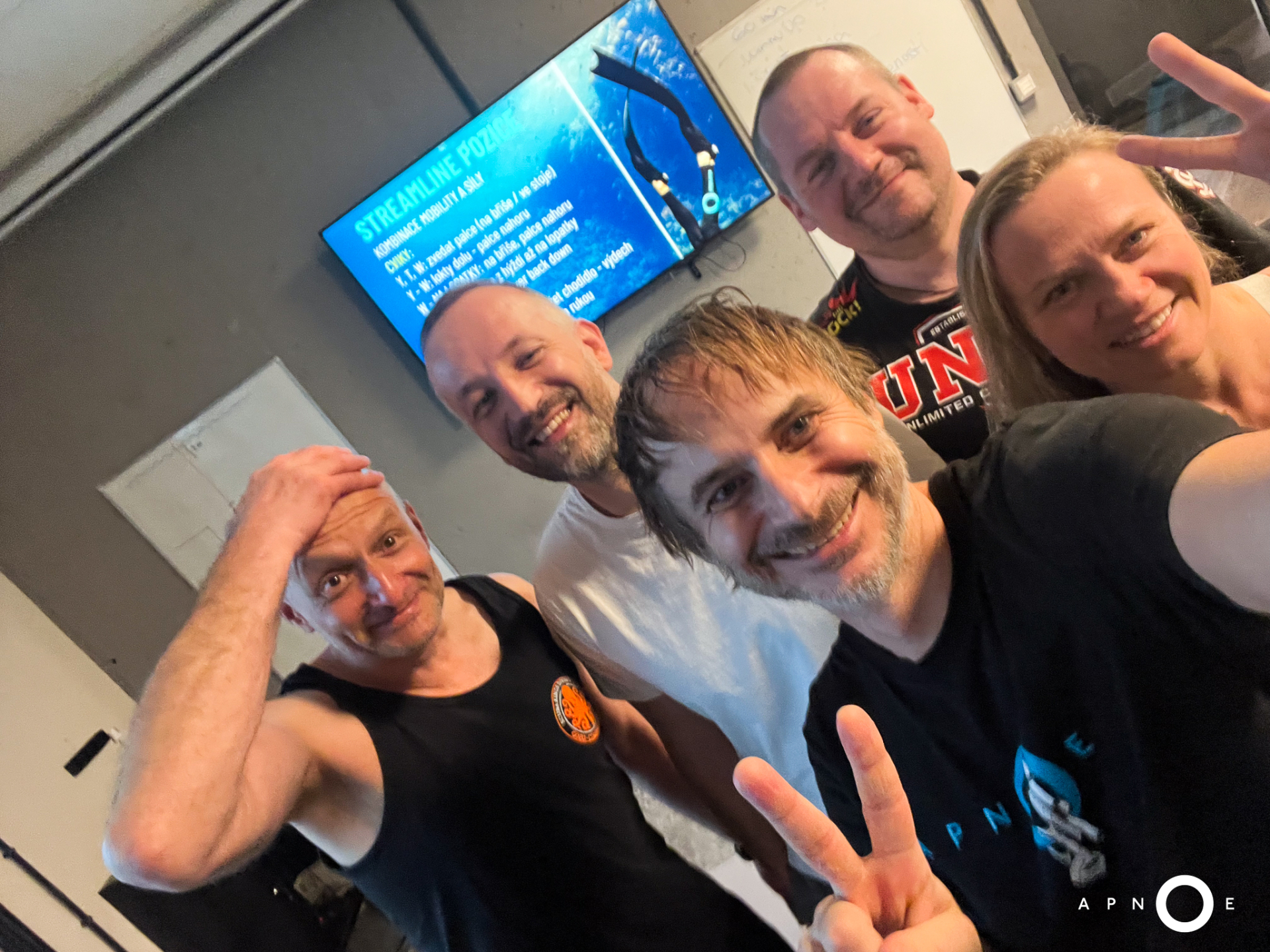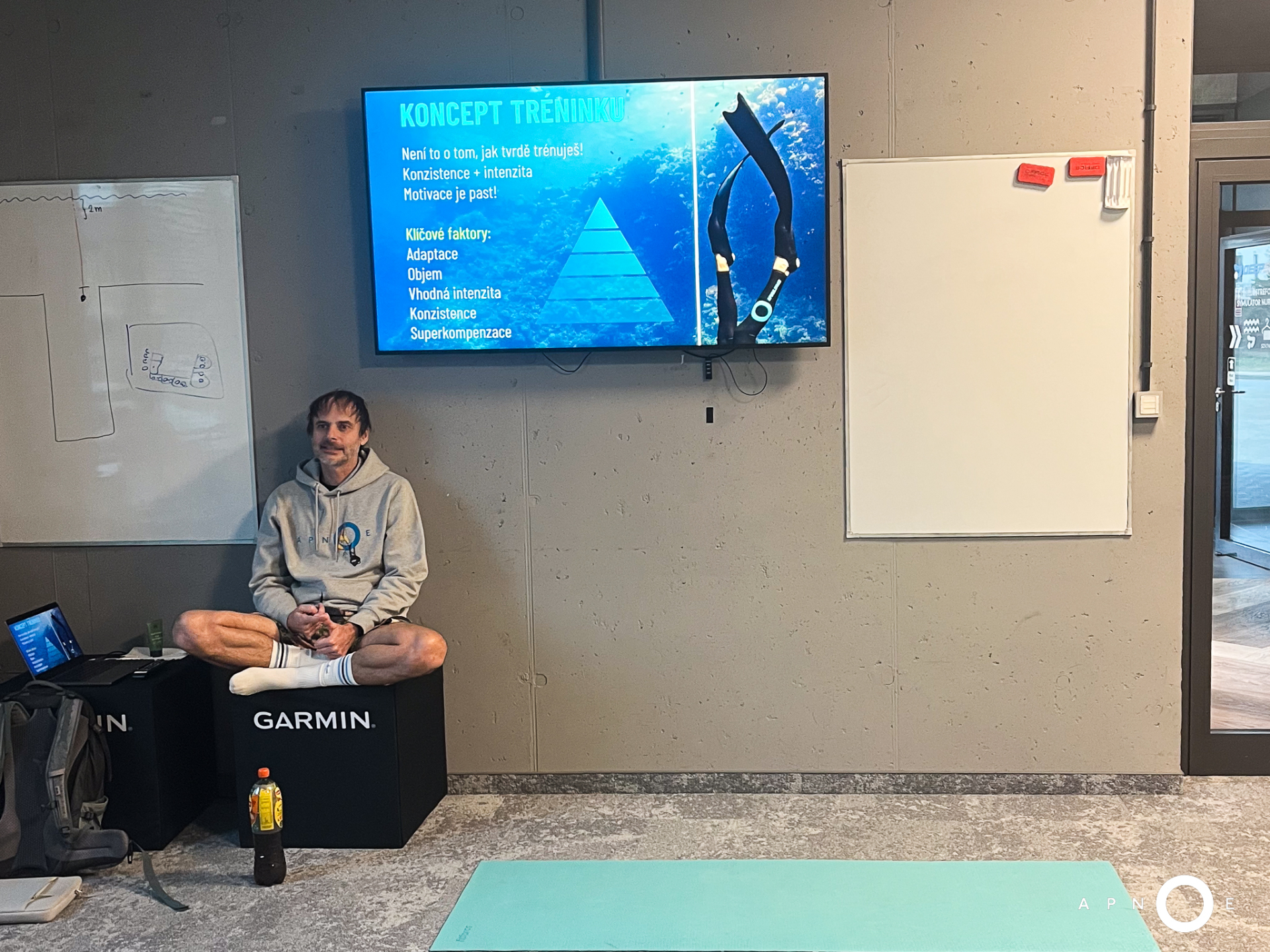 Po celé tři dny probíhala spousta specializovaných workshopů a teoretických přednášek zaměřených na vše, co je pro potápění do hloubek potřeba a co naše účastníky zajímalo. Samozřejmostí byl detailní rozbor techniky u všech čtyř disciplín, equalizace, koncept tréninku a jak se doma a v bazénu na hloubky připravit, nebo dýchání a realita hyperventilace. Každý den jsme představili spoustu nových cviků, zaměřených na mobilitu páteře, ramen a lopatek, fasciální strečink, nebo jen cvičení pro dobrou pohodu. Bylo toho opravdu hodně.
