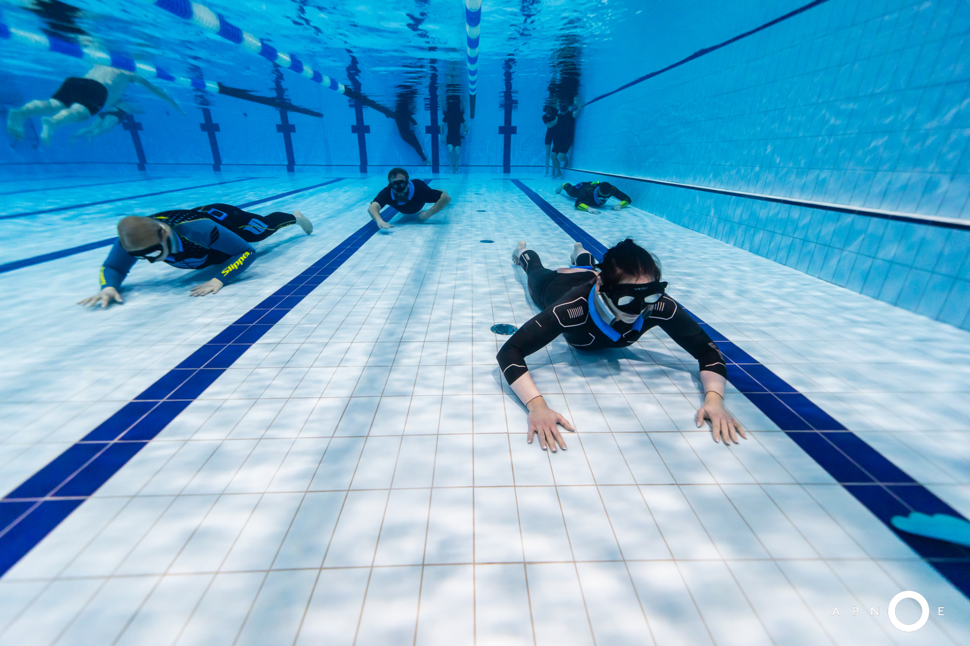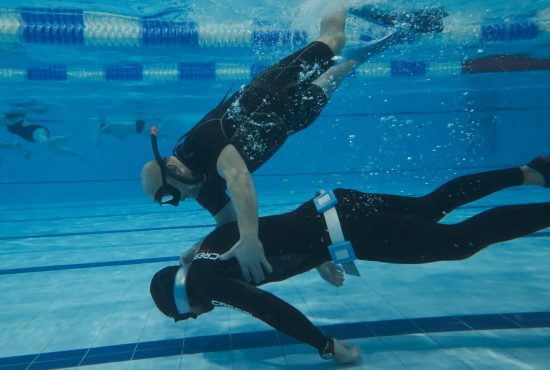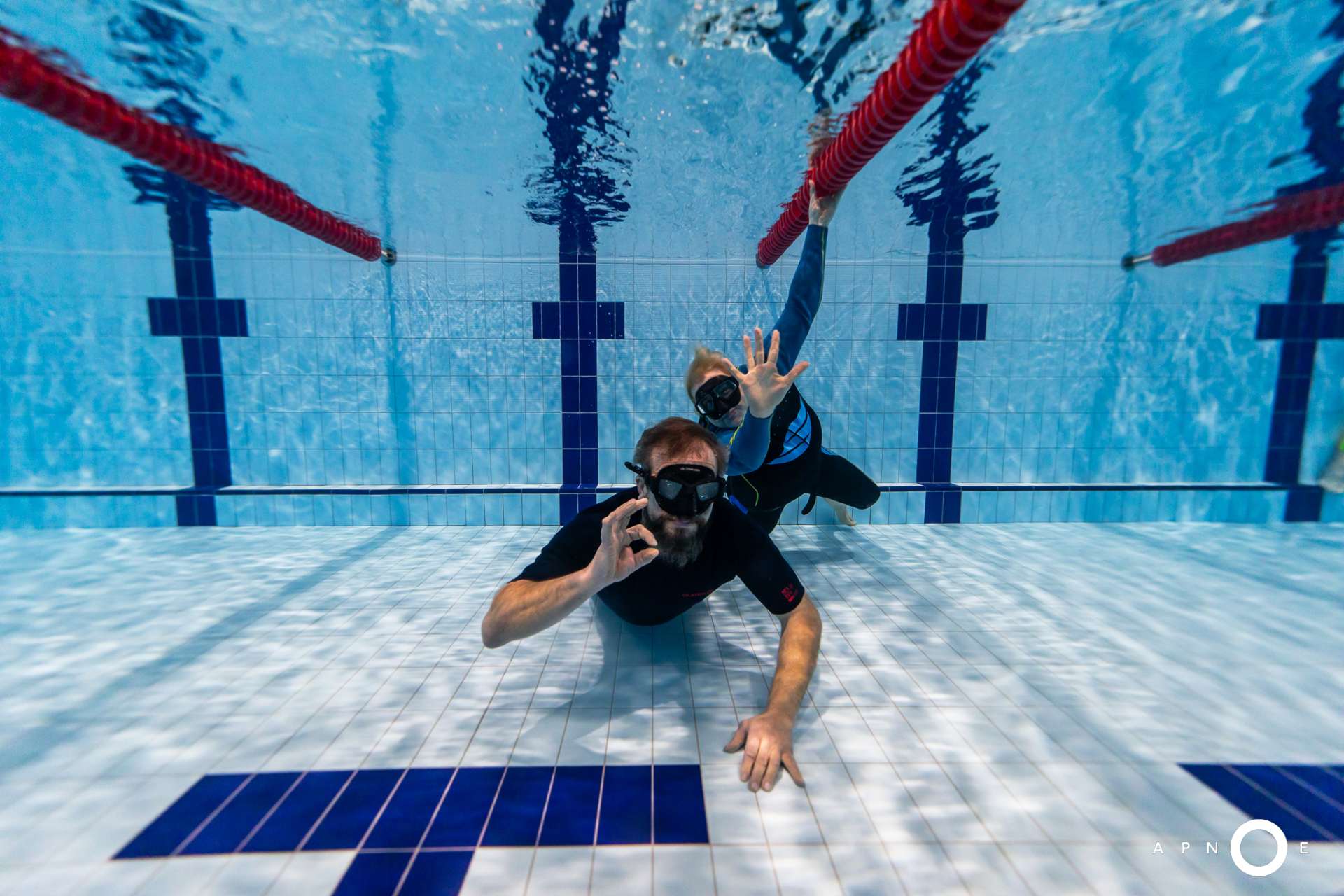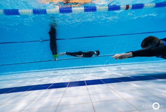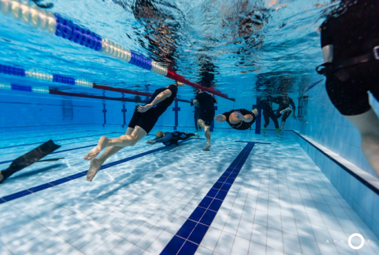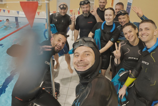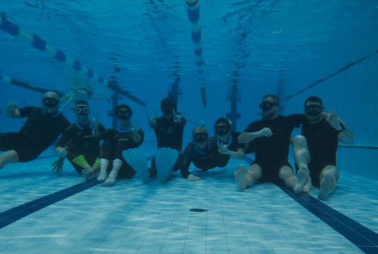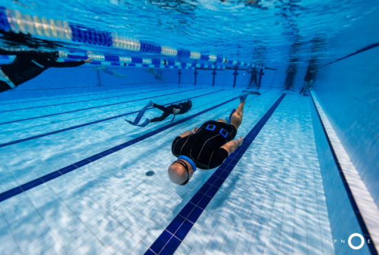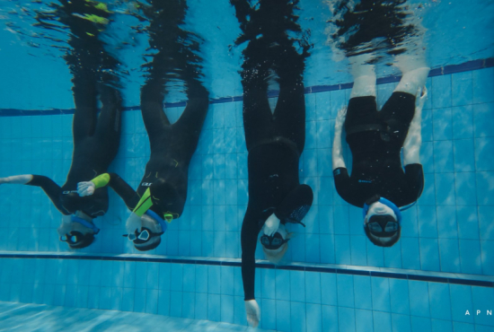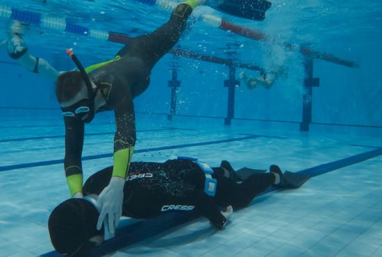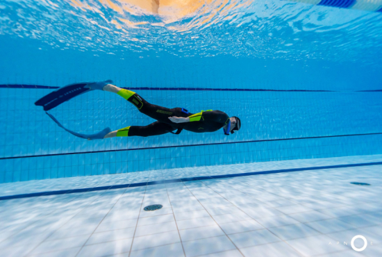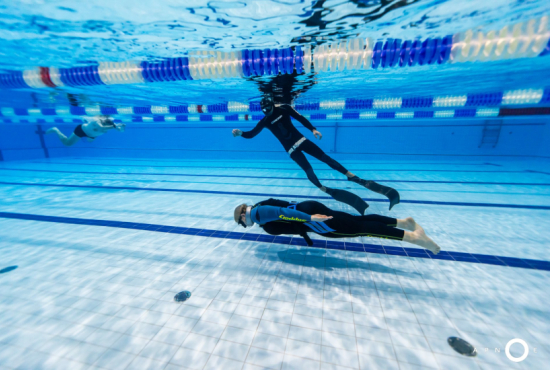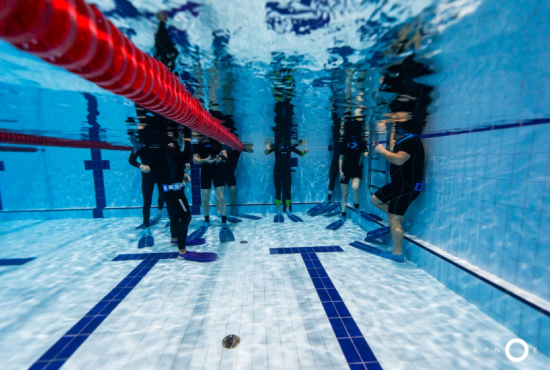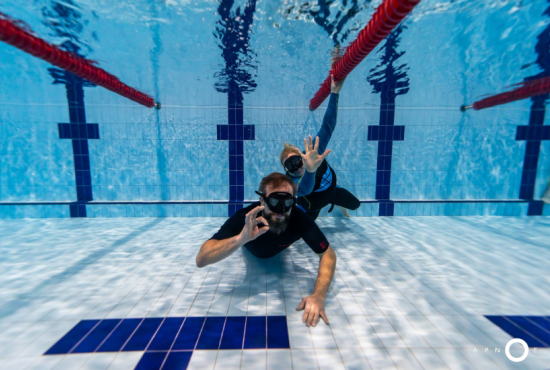 Oběd a druhá teoretická část. Ta je o fyziologii, o kyslíku a oxidu uhličitém, o hypervantilaci a klidovém dýchání, zkrátka o všech důležitých procesech, ke kterým v těle před a během zadržení dechu dochází. V informacích je síla a když víte jak na to, jsou vaše první zadržení dechu jistější. A znovu do vody. Tentokrát už jen pod vodou a různými styly. S ploutvemi, bez ploutví, plazením se po dně, ale i v týmu a ve dvojcích. Freedivig totiž není zas až tak úplně individuální sport. Ve vodě jste s někým, komu musíte důvěřovat a kdo je připraven se o vás v případě nutnosti postarat. Nácvik potápění v buddy týmu je tak nedílnou součástí každého kurzu.