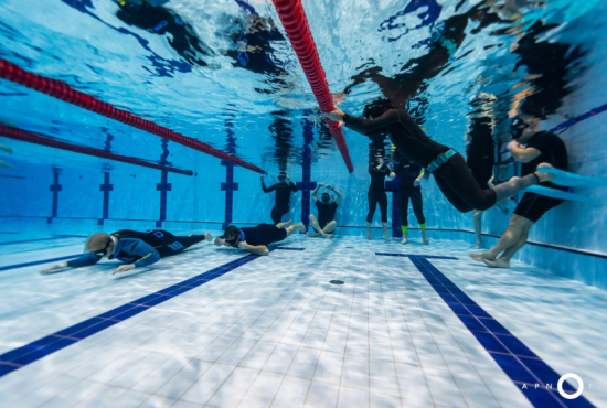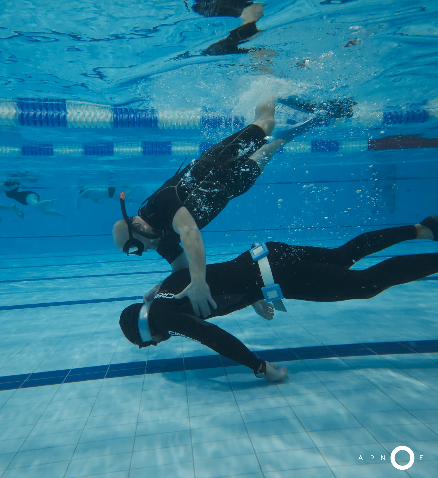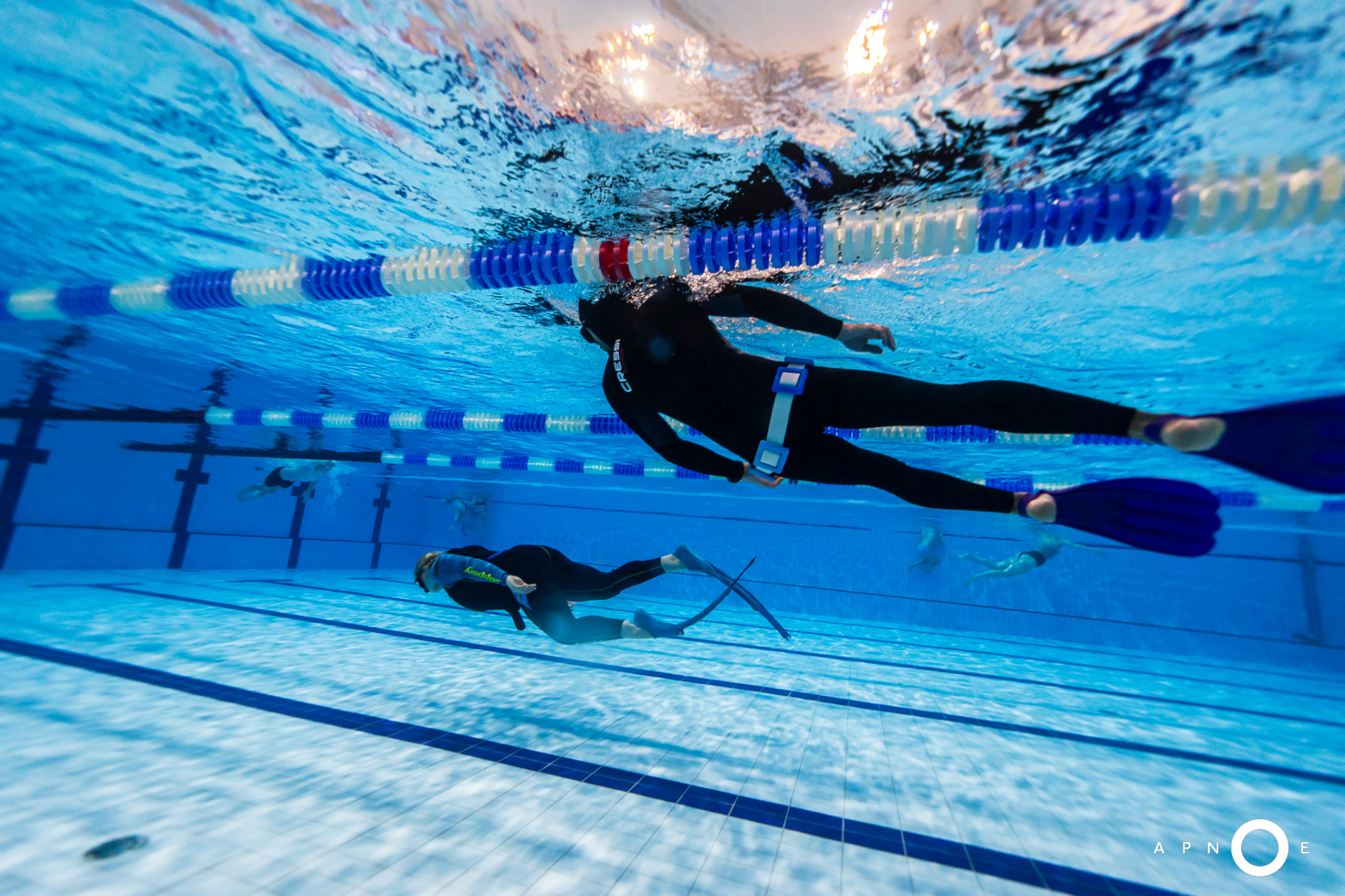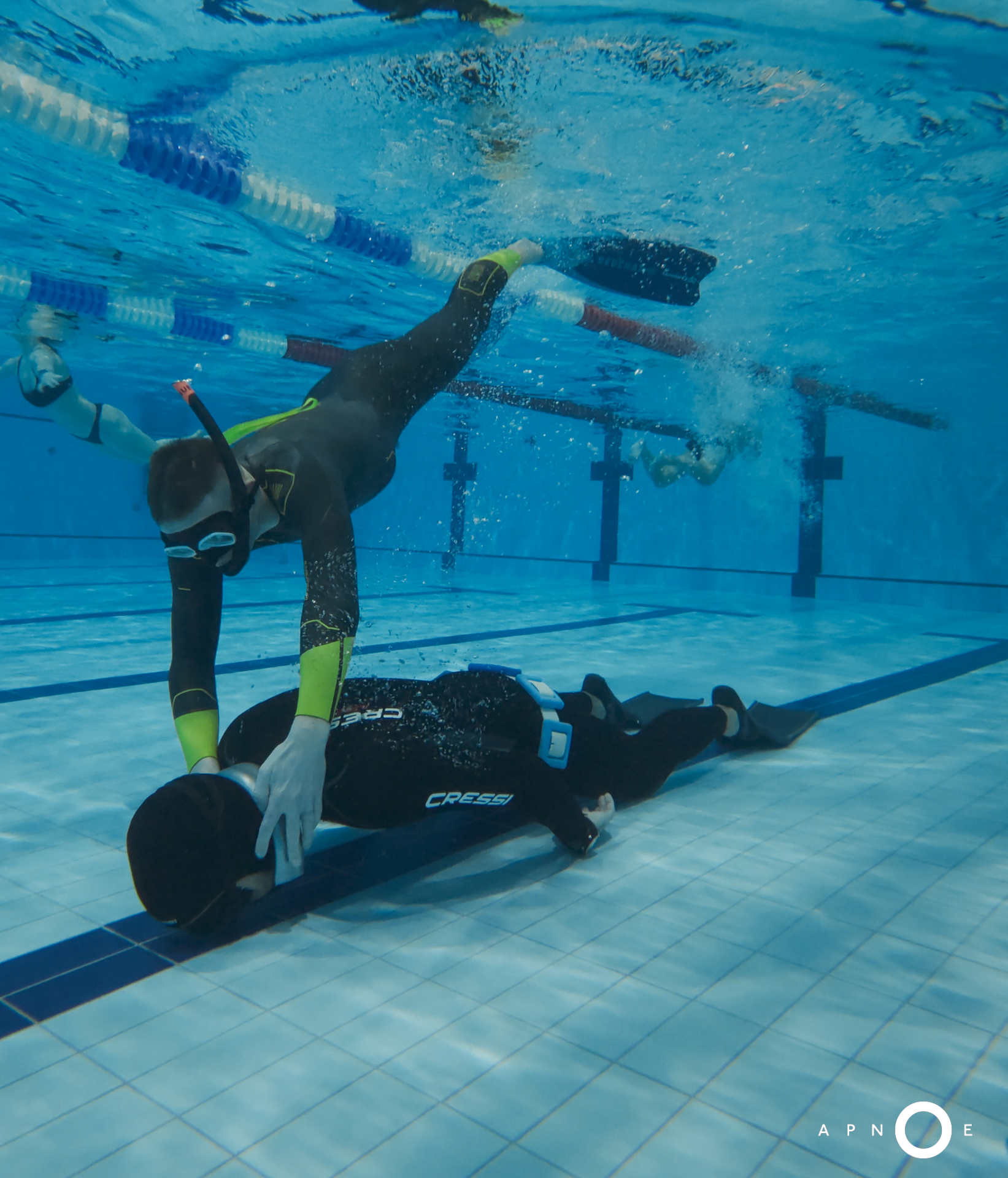 Oběd a druhá teoretická část. Ta je o fyziologii, o kyslíku a oxidu uhličitém, o hypervantilaci a klidovém dýchání, zkrátka o všech důležitých procesech, ke kterým v těle před a během zadržení dechu dochází. V informacích je síla a když víte jak na to, jsou vaše první zadržení dechu jistější. A znovu do vody. Tentokrát už jen pod vodou a různými styly. S ploutvemi, bez ploutví, plazením se po dně, ale i v týmu a ve dvojcích. Freedivig totiž není zas až tak úplně individuální sport. Ve vodě jste s někým, komu musíte důvěřovat a kdo je připraven se o vás v případě nutnosti postarat. Nácvik potápění v buddy týmu je tak nedílnou součástí každého kurzu.