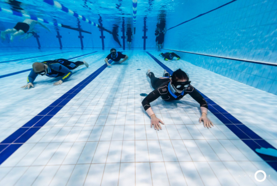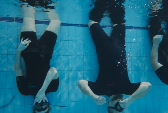 Vše probíhalo přesně podle plánu. Seznámení, představení freedivingu a kurzu samotného a první teoretické lekce o vybavení a fyzice. Ta se týká vztlaku a navážení. Pak na hodinu do vody a všechno si vzkoušet. Nejprve na hladině a pak po důkladném navážení i první tempa pod vodou.