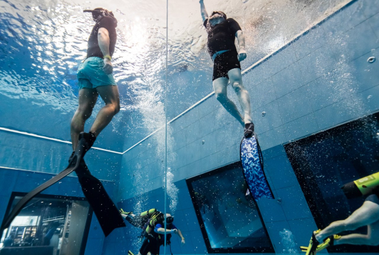 Emily a Marek trénovali. V Dahabu jsme se domluvili, že jim tady pomůžu s pár detaily u ponorů do hloubky, protože tam na to nebylo moc času. Instruktorský kurz je obvkle velmi intenzivní. Řešili jsme tak vyrovnávání tlaku a možnosti, které u mouthfilla jsou, jak lépe využít závodní ploutve Taras a jaký kop je s nimi nejvýhodnější, nebo techniku s monoploutví. Velká zábava, tohle mě moc baví. Krásný progres!